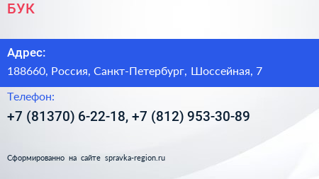 БУК по адресу 188660, Россия, Санкт-Петербург, Шоссейная, 7 в дальнейшем Организация, размещена в следующих категориях: