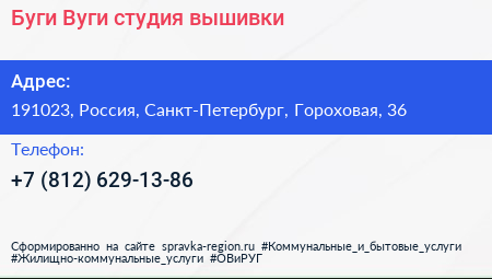 Буги Вуги, студия вышивки по адресу 191023, Россия, Санкт-Петербург, Гороховая, 36 в дальнейшем Организация, размещена в следующих категориях: