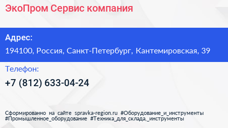 ЭкоПром-Сервис, компания по адресу 194100, Россия, Санкт-Петербург, Кантемировская, 39 в дальнейшем Организация, размещена в следующих категориях: