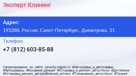 Эксперт Клининг по адресу 192288, Россия, Санкт-Петербург, Димитрова, 31 в дальнейшем Организация, размещена в следующих категориях: