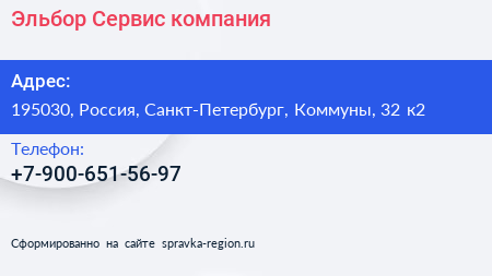 Эльбор-Сервис, компания по адресу 195030, Россия, Санкт-Петербург, Коммуны, 32 к2 в дальнейшем Организация, размещена в следующих категориях:
