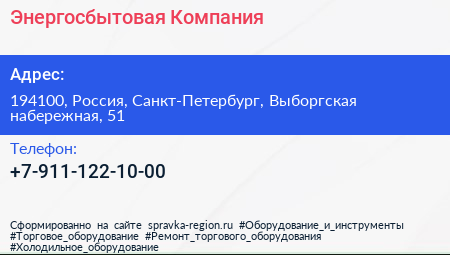 Энергосбытовая Компания по адресу 194100, Россия, Санкт-Петербург, Выборгская набережная, 51 в дальнейшем Организация, размещена в следующих категориях:
