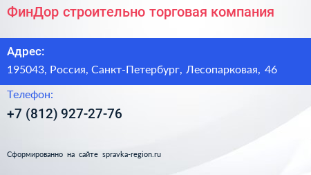ФинДор, строительно-торговая компания по адресу 195043, Россия, Санкт-Петербург, Лесопарковая, 46 в дальнейшем Организация, размещена в следующих категориях: