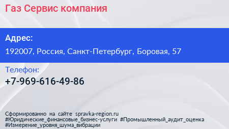 Газ-Сервис, компания по адресу 192007, Россия, Санкт-Петербург, Боровая, 57 в дальнейшем Организация, размещена в следующих категориях:
