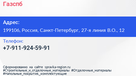 Газспб по адресу 199106, Россия, Санкт-Петербург, 27-я линия В.О., 12 в дальнейшем Организация, размещена в следующих категориях: