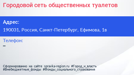 Городовой, сеть общественных туалетов по адресу 190031, Россия, Санкт-Петербург, Ефимова, 1в в дальнейшем Организация, размещена в следующих категориях: