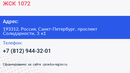 ЖСК №1072 по адресу 193312, Россия, Санкт-Петербург, проспект Солидарности, 3 к1 в дальнейшем Организация, размещена в следующих категориях: