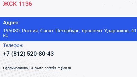 ЖСК №1136 по адресу 195030, Россия, Санкт-Петербург, проспект Ударников, 41 к1 в дальнейшем Организация, размещена в следующих категориях: