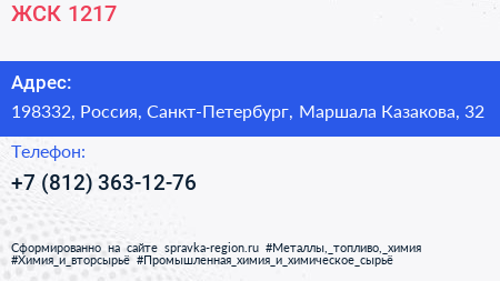 ЖСК №1217 по адресу 198332, Россия, Санкт-Петербург, Маршала Казакова, 32 в дальнейшем Организация, размещена в следующих категориях: