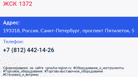 ЖСК №1372 по адресу 193318, Россия, Санкт-Петербург, проспект Пятилеток, 5 в дальнейшем Организация, размещена в следующих категориях:
