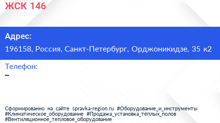 ЖСК №146 по адресу 196158, Россия, Санкт-Петербург, Орджоникидзе, 35 к2 в дальнейшем Организация, размещена в следующих категориях: