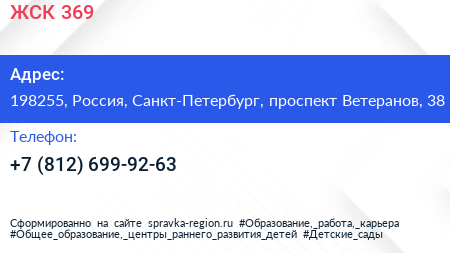 ЖСК №369 по адресу 198255, Россия, Санкт-Петербург, проспект Ветеранов, 38 в дальнейшем Организация, размещена в следующих категориях: