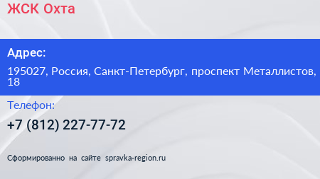 ЖСК Охта по адресу 195027, Россия, Санкт-Петербург, проспект Металлистов, 18 в дальнейшем Организация, размещена в следующих категориях: