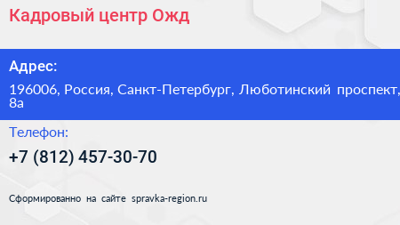 Кадровый центр Ожд по адресу 196006, Россия, Санкт-Петербург, Люботинский проспект, 8а в дальнейшем Организация, размещена в следующих категориях: