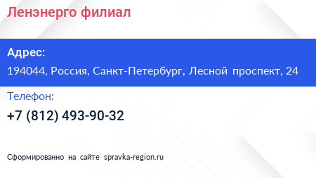 Ленэнерго, филиал по адресу 194044, Россия, Санкт-Петербург, Лесной проспект, 24 в дальнейшем Организация, размещена в следующих категориях: