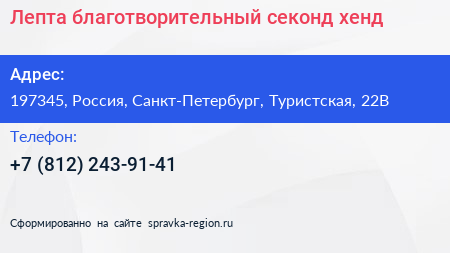 Лепта, благотворительный секонд-хенд по адресу 197345, Россия, Санкт-Петербург, Туристская, 22В в дальнейшем Организация, размещена в следующих категориях: