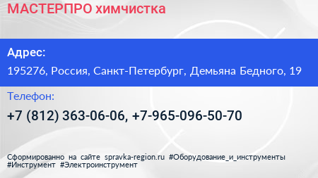 МАСТЕРПРО, химчистка по адресу 195276, Россия, Санкт-Петербург, Демьяна Бедного, 19 в дальнейшем Организация, размещена в следующих категориях: