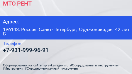МТО РЕНТ по адресу 196143, Россия, Санкт-Петербург, Орджоникидзе, 42 лит Б в дальнейшем Организация, размещена в следующих категориях: