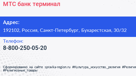 МТС банк, терминал по адресу 192102, Россия, Санкт-Петербург, Бухарестская, 30/32 в дальнейшем Организация, размещена в следующих категориях: