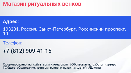Магазин ритуальных венков по адресу 193231, Россия, Санкт-Петербург, Российский проспект, 14 в дальнейшем Организация, размещена в следующих категориях: