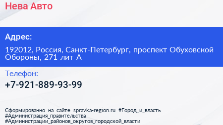 Нева-Авто по адресу 192012, Россия, Санкт-Петербург, проспект Обуховской Обороны, 271 лит А в дальнейшем Организация, размещена в следующих категориях: