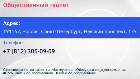 Общественный туалет по адресу 191167, Россия, Санкт-Петербург, Невский проспект, 179 в дальнейшем Организация, размещена в следующих категориях:
