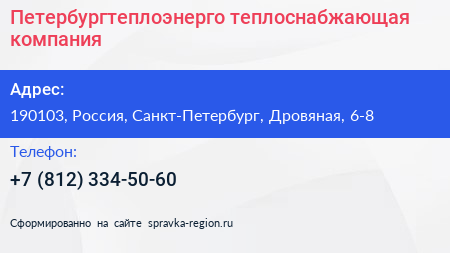 Петербургтеплоэнерго, теплоснабжающая компания по адресу 190103, Россия, Санкт-Петербург, Дровяная, 6-8 в дальнейшем Организация, размещена в следующих категориях: