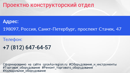 Проектно-конструкторский отдел по адресу 198097, Россия, Санкт-Петербург, проспект Стачек, 47 в дальнейшем Организация, размещена в следующих категориях: