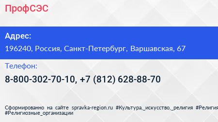 ПрофСЭС по адресу 196240, Россия, Санкт-Петербург, Варшавская, 67 в дальнейшем Организация, размещена в следующих категориях: