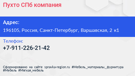 Пухто СПб, компания по адресу 196105, Россия, Санкт-Петербург, Варшавская, 2 к1 в дальнейшем Организация, размещена в следующих категориях: