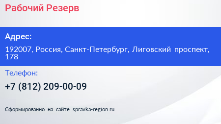 Рабочий Резерв по адресу 192007, Россия, Санкт-Петербург, Лиговский проспект, 178 в дальнейшем Организация, размещена в следующих категориях: