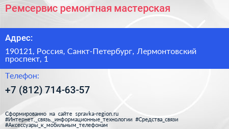 Ремсервис, ремонтная мастерская по адресу 190121, Россия, Санкт-Петербург, Лермонтовский проспект, 1 в дальнейшем Организация, размещена в следующих категориях:
