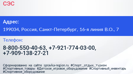 СЭС по адресу 199034, Россия, Санкт-Петербург, 16-я линия В.О., 7 в дальнейшем Организация, размещена в следующих категориях: