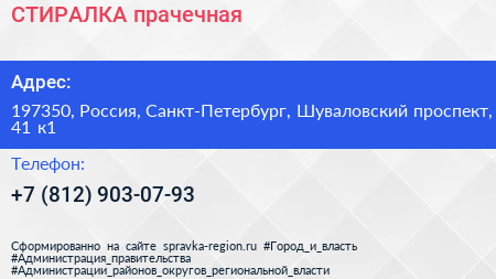 СТИРАЛКА, прачечная по адресу 197350, Россия, Санкт-Петербург, Шуваловский проспект, 41 к1 в дальнейшем Организация, размещена в следующих категориях: