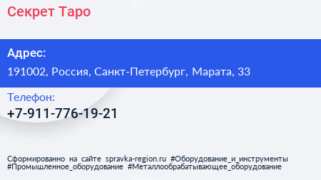 Секрет Таро по адресу 191002, Россия, Санкт-Петербург, Марата, 33 в дальнейшем Организация, размещена в следующих категориях: