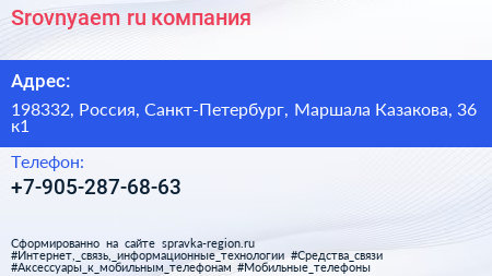 Srovnyaem.ru, компания по адресу 198332, Россия, Санкт-Петербург, Маршала Казакова, 36 к1 в дальнейшем Организация, размещена в следующих категориях:
