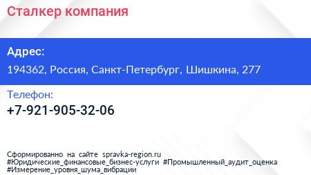 Сталкер, компания по адресу 194362, Россия, Санкт-Петербург, Шишкина, 277 в дальнейшем Организация, размещена в следующих категориях: