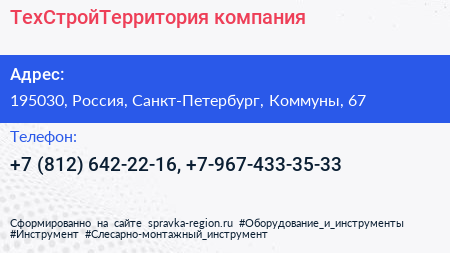 ТехСтройТерритория, компания по адресу 195030, Россия, Санкт-Петербург, Коммуны, 67 в дальнейшем Организация, размещена в следующих категориях: