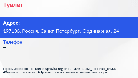 Туалет по адресу 197136, Россия, Санкт-Петербург, Ординарная, 24 в дальнейшем Организация, размещена в следующих категориях: