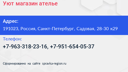 Уют, магазин-ателье по адресу 191023, Россия, Санкт-Петербург, Садовая, 28-30 к29 в дальнейшем Организация, размещена в следующих категориях: