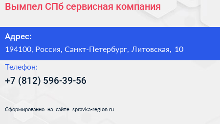Вымпел СПб, сервисная компания по адресу 194100, Россия, Санкт-Петербург, Литовская, 10 в дальнейшем Организация, размещена в следующих категориях: