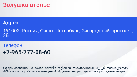 Золушка, ателье по адресу 191002, Россия, Санкт-Петербург, Загородный проспект, 28 в дальнейшем Организация, размещена в следующих категориях: