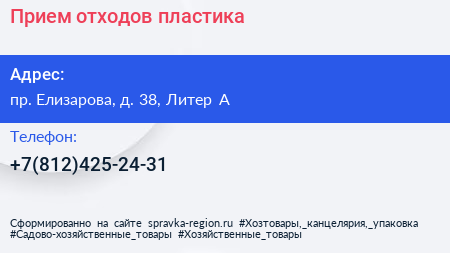 Прием отходов пластика по адресу пр. Елизарова, д. 38, Литер А в дальнейшем Организация, размещена в следующих категориях: