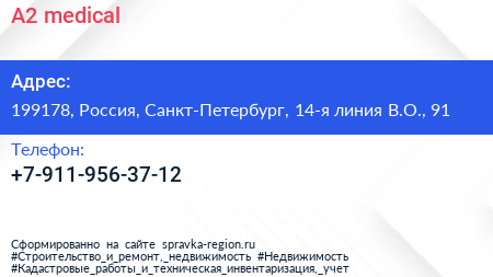 A2 medical по адресу 199178, Россия, Санкт-Петербург, 14-я линия В.О., 91 в дальнейшем Организация, размещена в следующих категориях:
