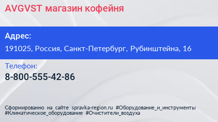 AVGVST, магазин-кофейня по адресу 191025, Россия, Санкт-Петербург, Рубинштейна, 16 в дальнейшем Организация, размещена в следующих категориях: