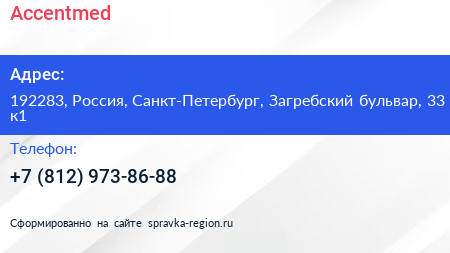Accentmed по адресу 192283, Россия, Санкт-Петербург, Загребский бульвар, 33 к1 в дальнейшем Организация, размещена в следующих категориях: