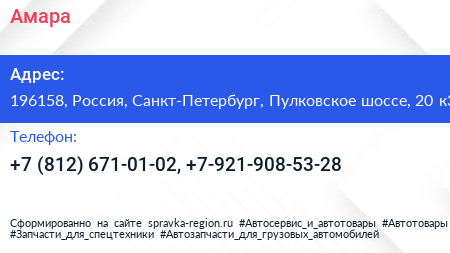 Амара по адресу 196158, Россия, Санкт-Петербург, Пулковское шоссе, 20 к3 в дальнейшем Организация, размещена в следующих категориях: