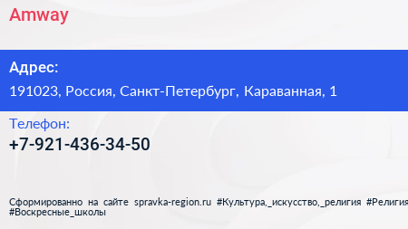 Amway по адресу 191023, Россия, Санкт-Петербург, Караванная, 1 в дальнейшем Организация, размещена в следующих категориях:
