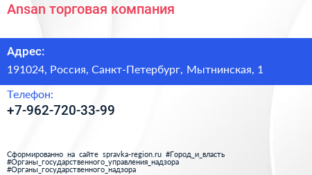 Ansan, торговая компания по адресу 191024, Россия, Санкт-Петербург, Мытнинская, 1 в дальнейшем Организация, размещена в следующих категориях: