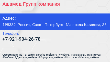 Ашамед Групп, компания по адресу 198332, Россия, Санкт-Петербург, Маршала Казакова, 35 в дальнейшем Организация, размещена в следующих категориях: